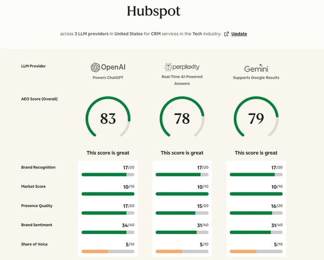 Pro tip: Use HubSpot’s free AEO Grader to see how your website is appearing in AI search engines.